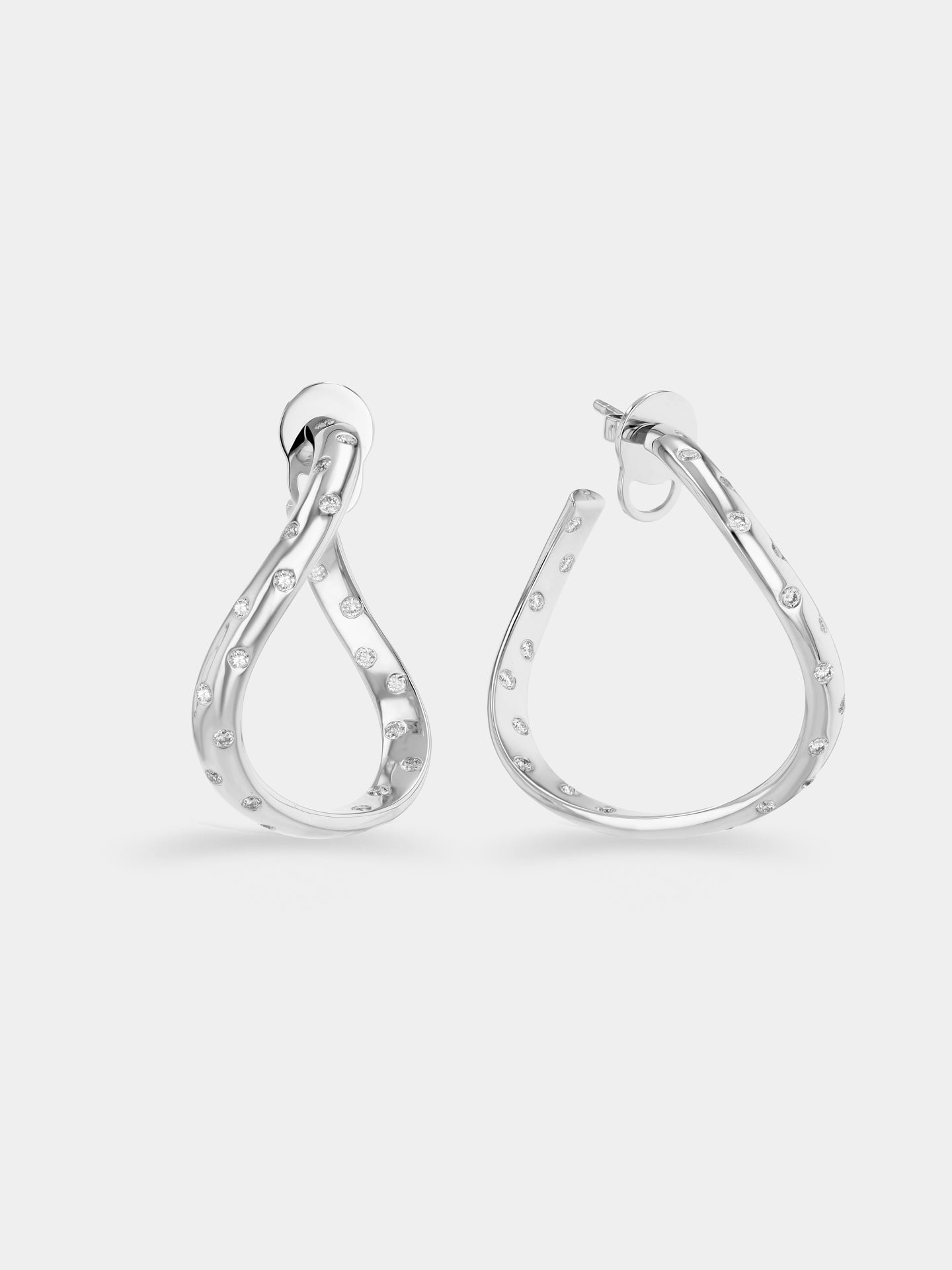 Sculpted in white gold, these hoops shimmer with polka-dotted placements of light-catching diamonds. A refined play on texture and light.